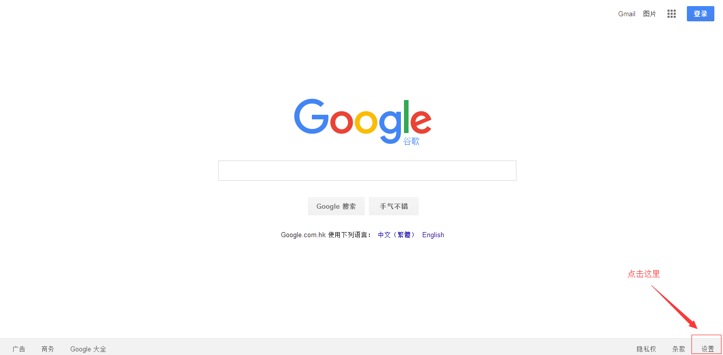 第一步:进入谷歌搜索页面,点击右下角设置。