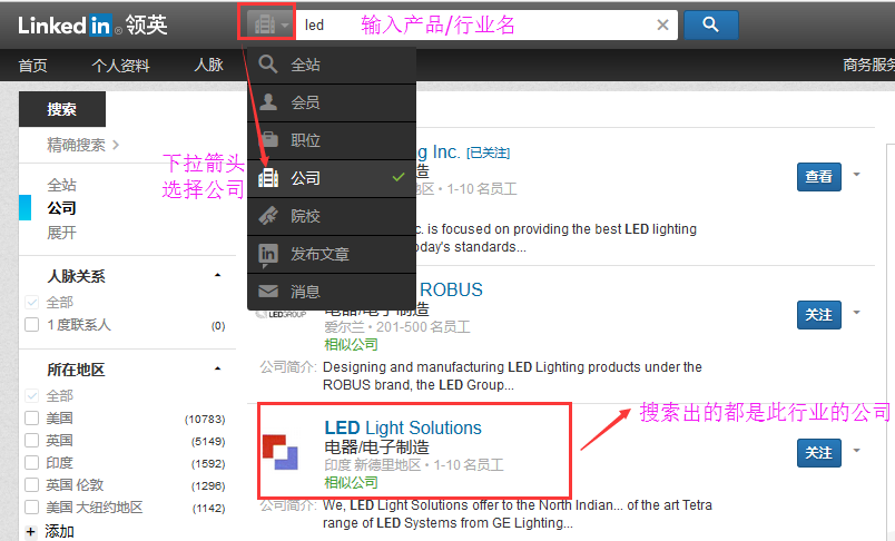 如果领英搜索栏里选择companies,那就是搜到的都是公司,进入那个公司的领英主页,看看里面发布的动态信息是不是你们的产品。