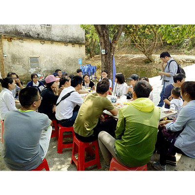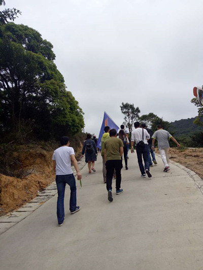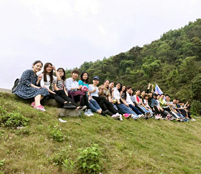 肆月,时速营销邮的小伙伴们一起走上踏青的山路。