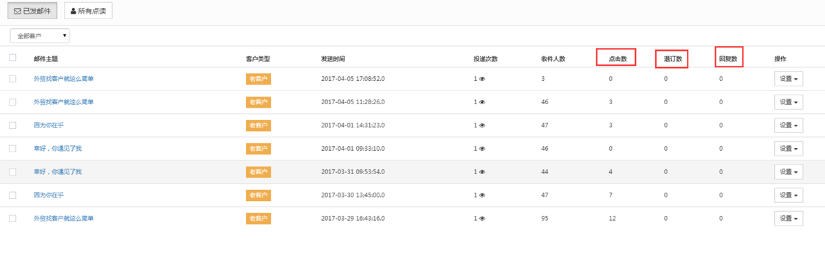 能够清楚追踪到邮件的点击次数、退订数、以及回复数等,这个就是作为持续营销的依据,也能很好的抓住有点读的客户进行重点跟进。
