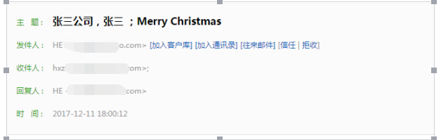 那么张三李四等收到的邮件都会有他的姓名何公司名,如张三会收到:
