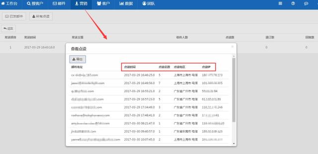 批量群发开发信之后,可以清楚的看到邮件的点读数据:点读的时间、次数、地区和IP,清楚地看到客户在哪个国家,以及通过分析点读的时间和次数,可以更好地为下一步邮件营销作相应的计划。